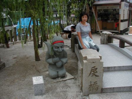 境内には、前代の戻り橋の橋桁がありました。 | これが、現在の橋と橋桁 |