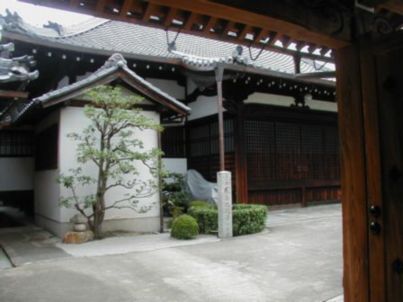 新徳寺境内です。見学は出来ません。八木邸の斜め向かいにあり、江戸から上洛した浪士隊の本陣となり、清河八郎が「実は幕府を倒すために京に入った」と大演説した場所です。 |