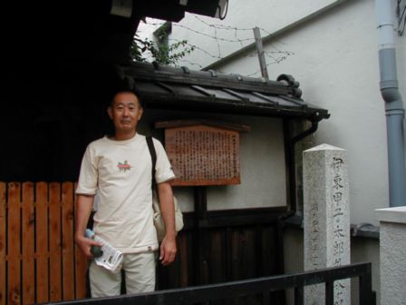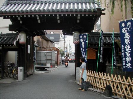 壬生寺でYocchiさんと再会しました。何と大阪や神戸などでは雷雨があったとか。運良く京都は昨日は降っていたらしいのですが、今日は傘もいらない程度の小雨。ラッキー!Yocchiさんの運転で、現在の下京区にある「島原」へ |