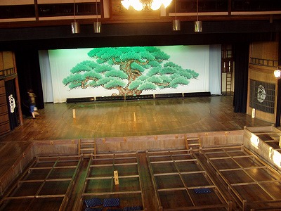 中に入ると、「すご〜〜い」という声があちらこちらから聞こえてきます。 とても重厚な素晴らしい劇場です。 写真は大向こうから撮ったものと花道から撮ったものです。 |