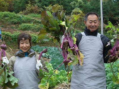 赤蕪を畑から抜きました。 |