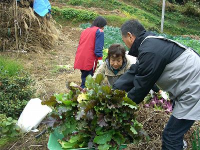 抜いた蕪を一輪車に乗せて、作業場へ移動します。 |