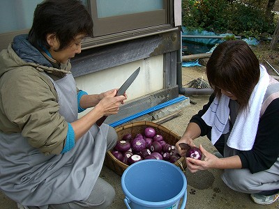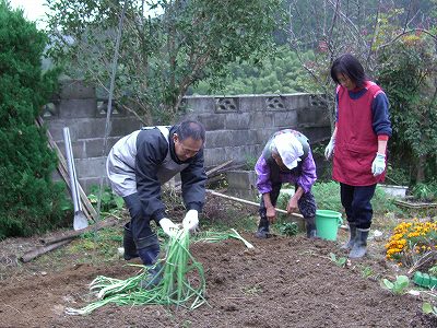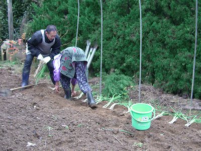 その間に僕は、菊池さんの奥さんと葱の植え替えを