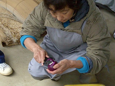 それが終わったら、仕度人は残した枝の部分の周りの川を包丁で剥きます。
