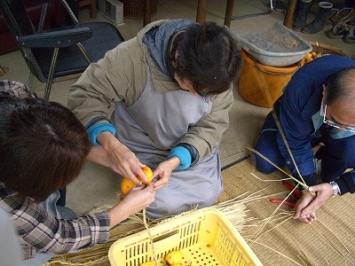 柿を吊るすための、縄を作ります。