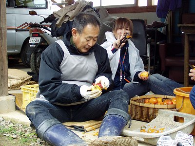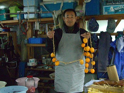 葱を植え終わった僕は、仕度人とエリちゃんと3人で干し柿作りに取り掛かりました。