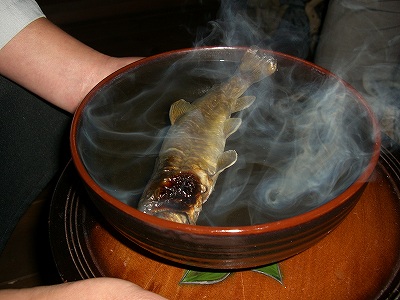 ずっと囲炉裏で焼き続けていた天魚を入れ