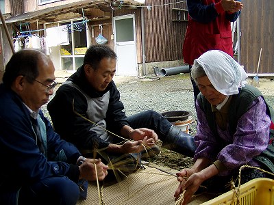 この作業は、今はナイロン製の縄を使うために