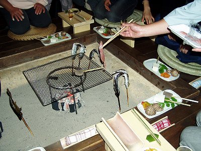 いわなかあまごの塩焼きです。↑囲炉裏端で