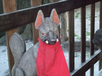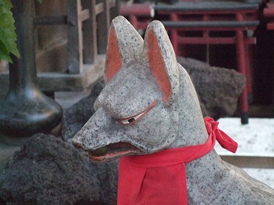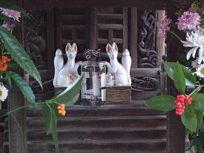 門の前には稲荷が。稲荷といえば、狐さんですね。