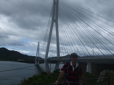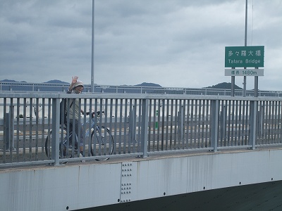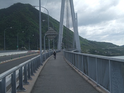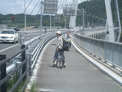 橋の上はほとんど平ら。 また、この橋から尾道方面からの自転車ばかりと すれ違うようになりました |