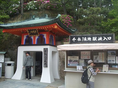 地獄峡の洞穴から、はいでると いきなり巨大な観音様が現れます。 地獄に仏か。効果抜群な配置に感心。 |