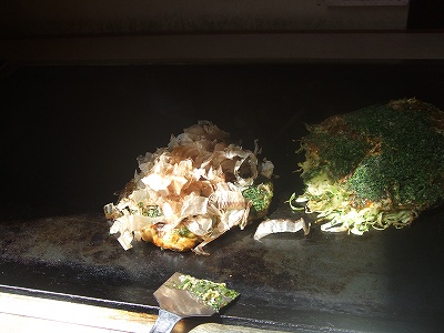 | 尾道城が眺められました。 | 3日目の昼食は尾道でと 決めていたので、駅の観光案内のアップでみつけた 「お好み焼き すみチャン」に行きました。 広島風豚玉と関西風イカ玉 |