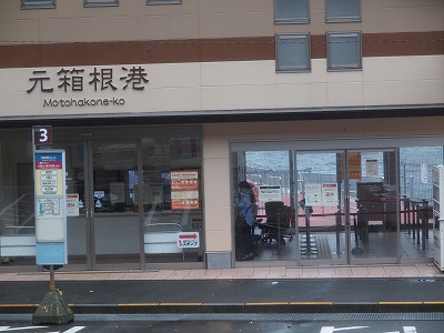 バス停に着くとすぐに元箱根行のバスが来ました。 | 予定通りに元箱根港に到着 ただし、途中のバス停で女の子たちのグループが 乗車した時に運転手さんが 「もしかして、海賊船に乗るの?」 「今日は運休しているよ」 |