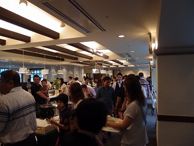| 朝、窓の外を見ると雨は夜のうちに止んだようです。 | うたげの後 片付けを考えるとガックリ・・ | とりあえず、朝食を取りに向かいます。 |