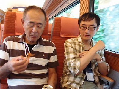 あっという間に持ち込んだ飲み物を飲み終えてしまい。 車内販売で、アルコール類を追加 |