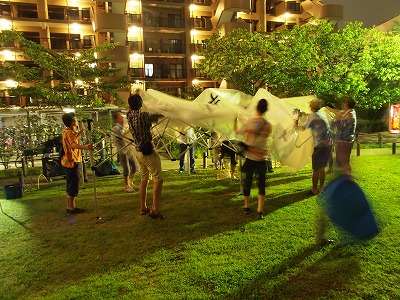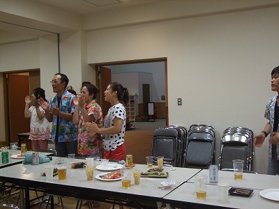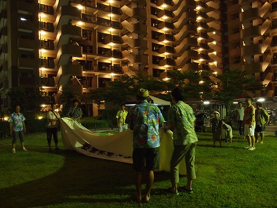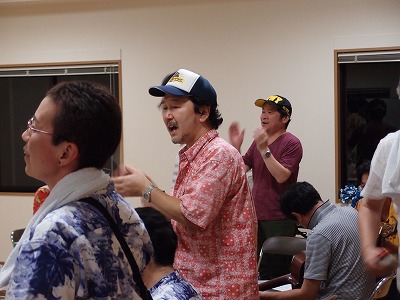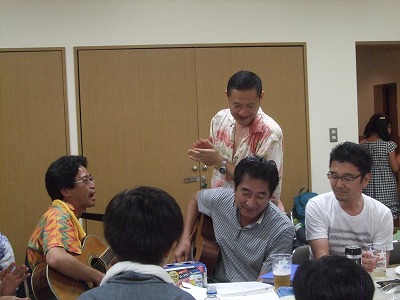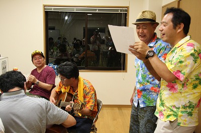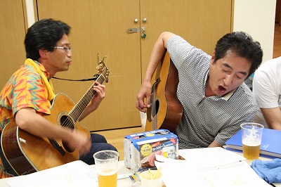夜も11時となりました。 最後に、ビアガーデンでも歌った「明日があるさ」を合唱しよう! |