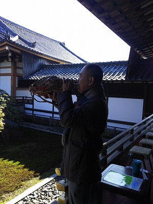 聖護院は、多くの映画や時代ドラマで撮影場所として使われていました。 また、市松模様が描かれた白砂の庭でも有名です。 庭の中央にある四角のスペースで、護摩焚きをします。 |