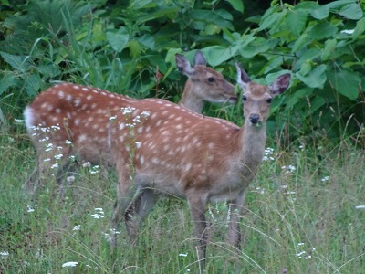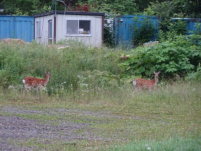 朝早く、散歩に出掛けました。 実は昨日の朝、温泉に入ろうとロビーの前を歩いていたら、駐車場に鹿が居るのを発見 温泉を出てから、探したのですがもう姿はありませんでした。 ということで、今日は早朝散歩を試みたのです。 |