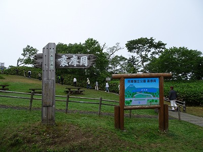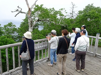 途中までは、晴れていたのに・・・ 到着するとやはり霧の摩周湖 ガイドさんによると、今日は霧が発生する風向きなのだそうです。 |