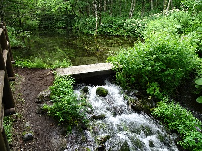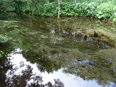 山を降りると霧は晴れていました。 やってきたのは、「神の小池」 とても、透明で美しかったです。最近は観光客も多くなったそうですが、砂利道をガタガタと走ってこないといけません。 |
