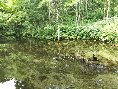 摩周湖の地下水によってできたと言われている青い清水を湛える池です。 摩周湖(カムイトー=神の湖)の伏流水からできているという言い伝えで「神の子」池と呼ばれます。 |
