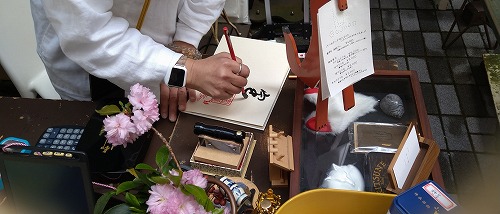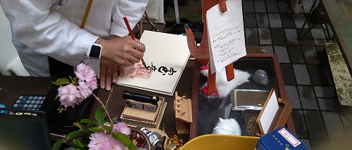 コロナ渦で今は御朱印は殆どが書き置きとなっていますが、 今日は目の前で書いてくれます。 |