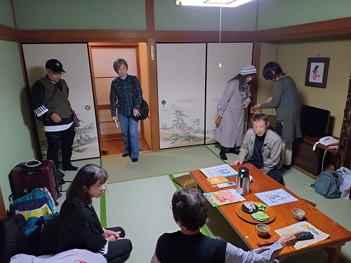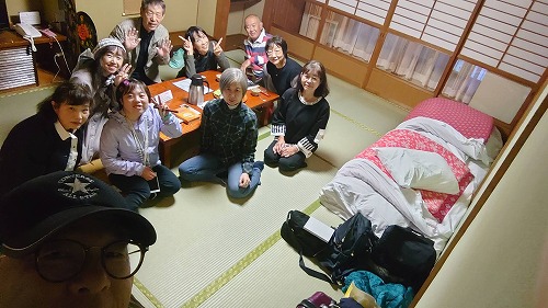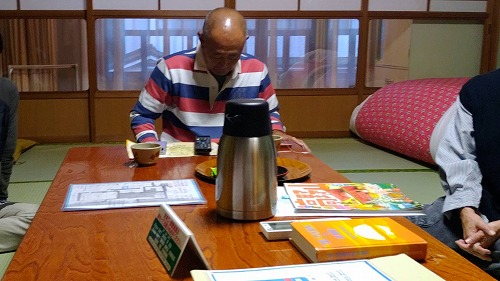 | 夜のミーティング これから行く「奥之院ナイトツアー」や明日の予定を確認 |