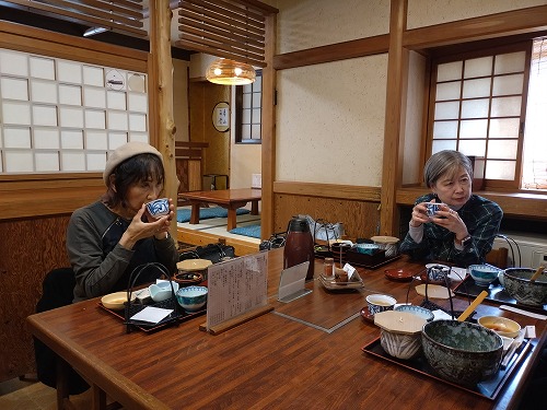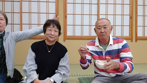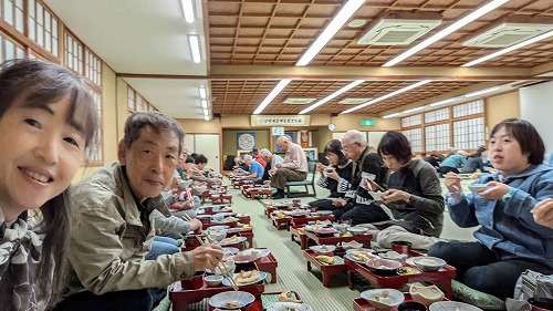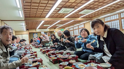 みんなで昼食を食べながら再会を喜びあいます。 |