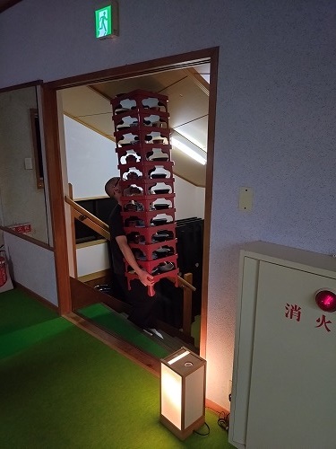 みんなが、手を叩いて感心したのがお膳をお片付け 何重にも重ねて階段を降りていきます。 |