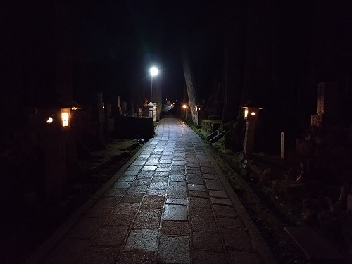 昼間の奥之院とは違うひんやりとした空気が漂っていました。 |