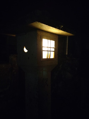 | 奥之院にある石灯籠は側面に満月と半月、三日月の形で開けられています。 理由はご自分でお調べください |