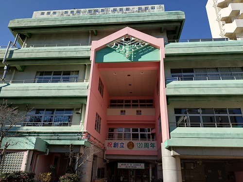 最初に向かうのは矢先稲荷神社です。 途中でウルトラマンに会いました。 創立120周年の「松葉小学校」を通り過ぎると |