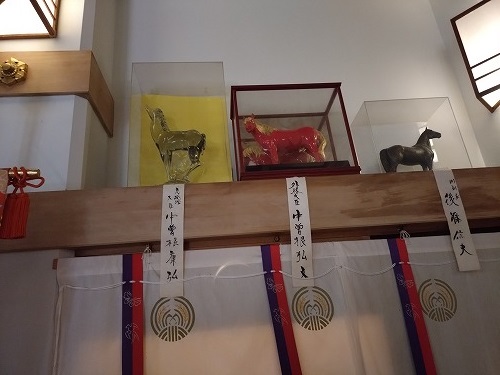 さらに馬の置物が飾って要りました。 寄贈者には昔の自民党の大御所の面々のお名前も |