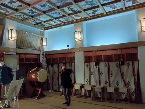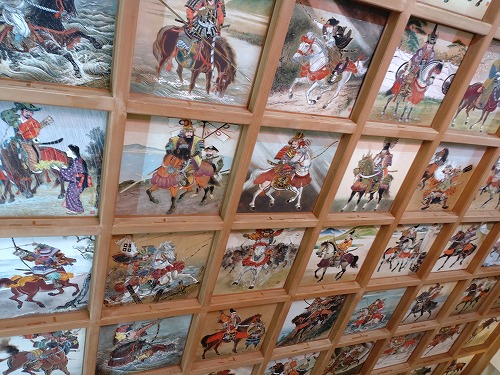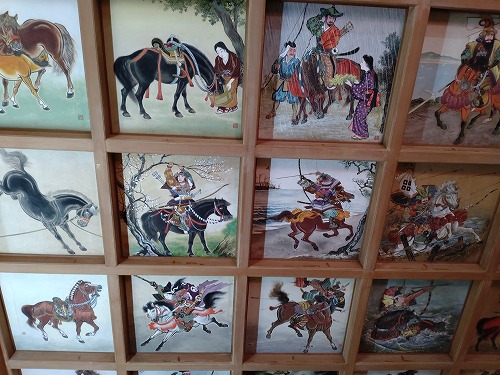 天井一面に馬の絵 一枚一枚の説明が一覧表になっていました。 |