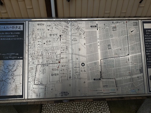 右の写真は明治時代の古地図と寺社を中心とした現代の地図 文化の散歩道 |