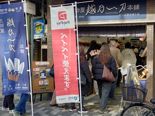 唯一開店していたペイペイ使えますの店(刃物専門店)には外国客が押し寄せていました。 |