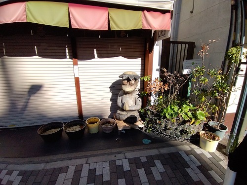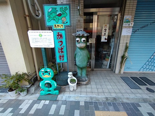 閉まっている店はカッパが門番していました。 |