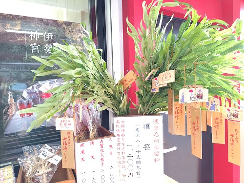 これまで浅草七福神では色紙に御朱印でしたが 今回は福笹にしてみました。 |