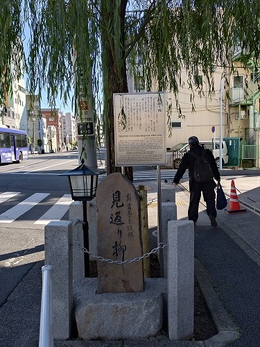 見返り柳 吉原遊郭から帰る客が、名残惜しげに振り返る様子からこの名がついたと伝わっています。 |