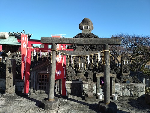 壽老人が祀られています。 左の溶岩石で出来た山は宝暦8年(1758)の建立。当時普及を見た富士信仰・講の記念の富士遙拝所 すぐ脇に隅田川が流れていますがその向かい岸は、隅田川七福神巡りのコースになっています。 |