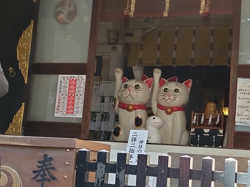 社務所にも境内には至る所に猫のモチーフの置き物だらけ |