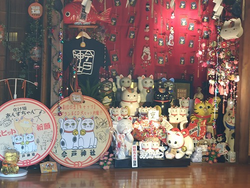 今戸神社」のある浅草周辺では、江戸時代に今戸焼の招き猫が大流行したことから、招き猫発祥の地になったという説があります。 |