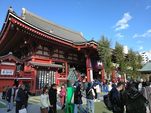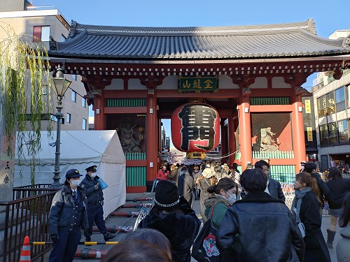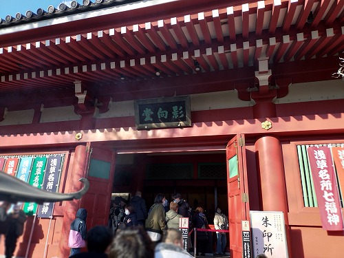 | 隣の浅草寺へ移動 そこは、更に大混雑 ガードマンに説明して脇から脱走させてもらい、大黒天の祀られている影向堂へ 大黒天は撮影禁止 ケチだ! |