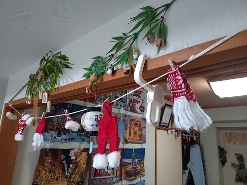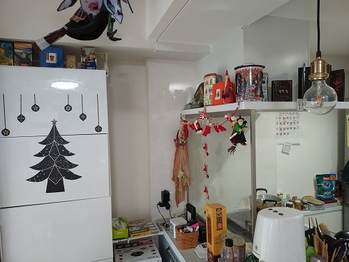 いつもと代わり映えはしませんが、クリスマスグッズで飾りつけ |