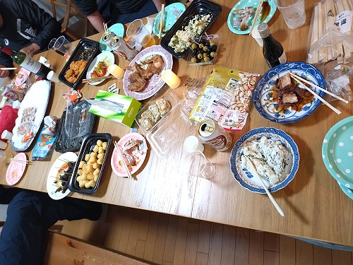 持ち寄って頂いたお料理がテーブルいっぱいに広がります |