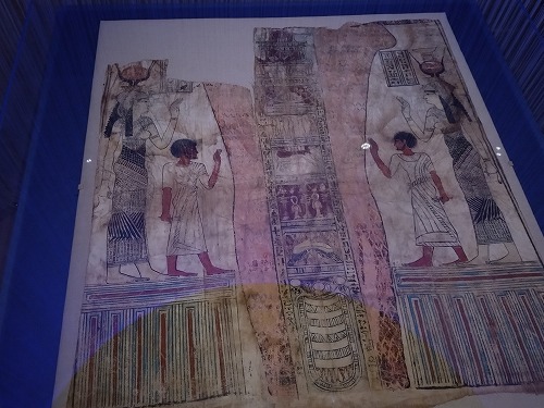 神官ホル(ホルス)のカルトナージュとミイラ この辺りは「古代エジプト語の呪文が流れていました。 |