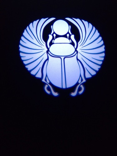 右は購入した一つで、スカルベ(フンコロガシ)他にもカノプス人形等々色々なグッズを買って着ました。 |