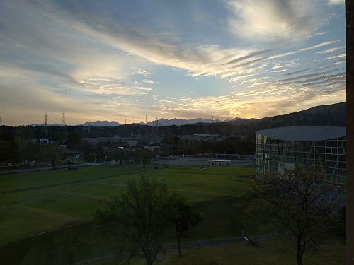 朝、ホテルの部屋からの景色、今日も晴れたら良いけど 朝食をとって8時半には出発です。 |