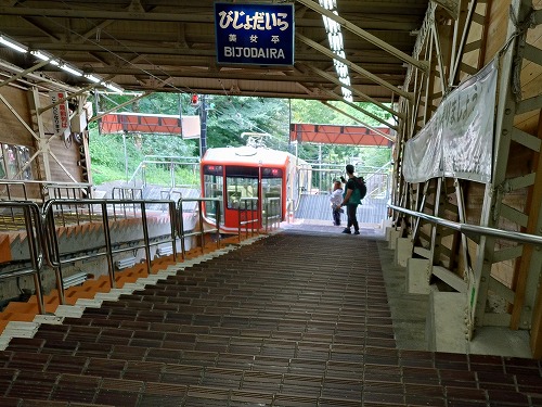約500mをケーブルカーで登ります。 |